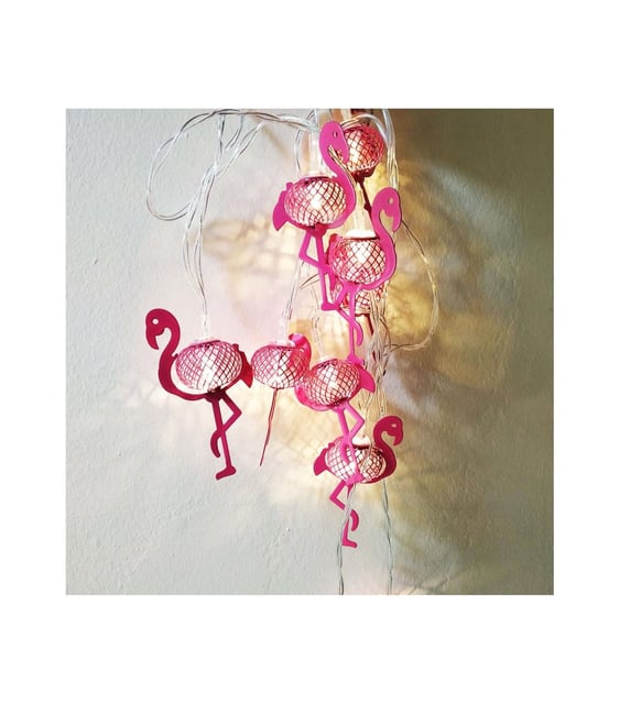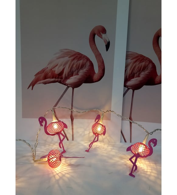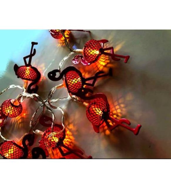 AsonPlus Dekoratif Flamingo Led Işıklı 10 lu Metal Flamingo Dizeleri Pilli Gece Lambası